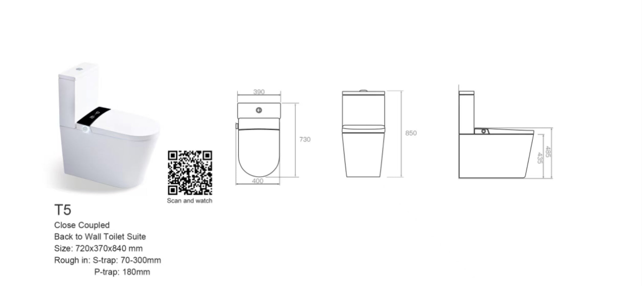 - Close Couopled toilet, designed to retro fit exsiting toilet to smart toilet without thick seat.