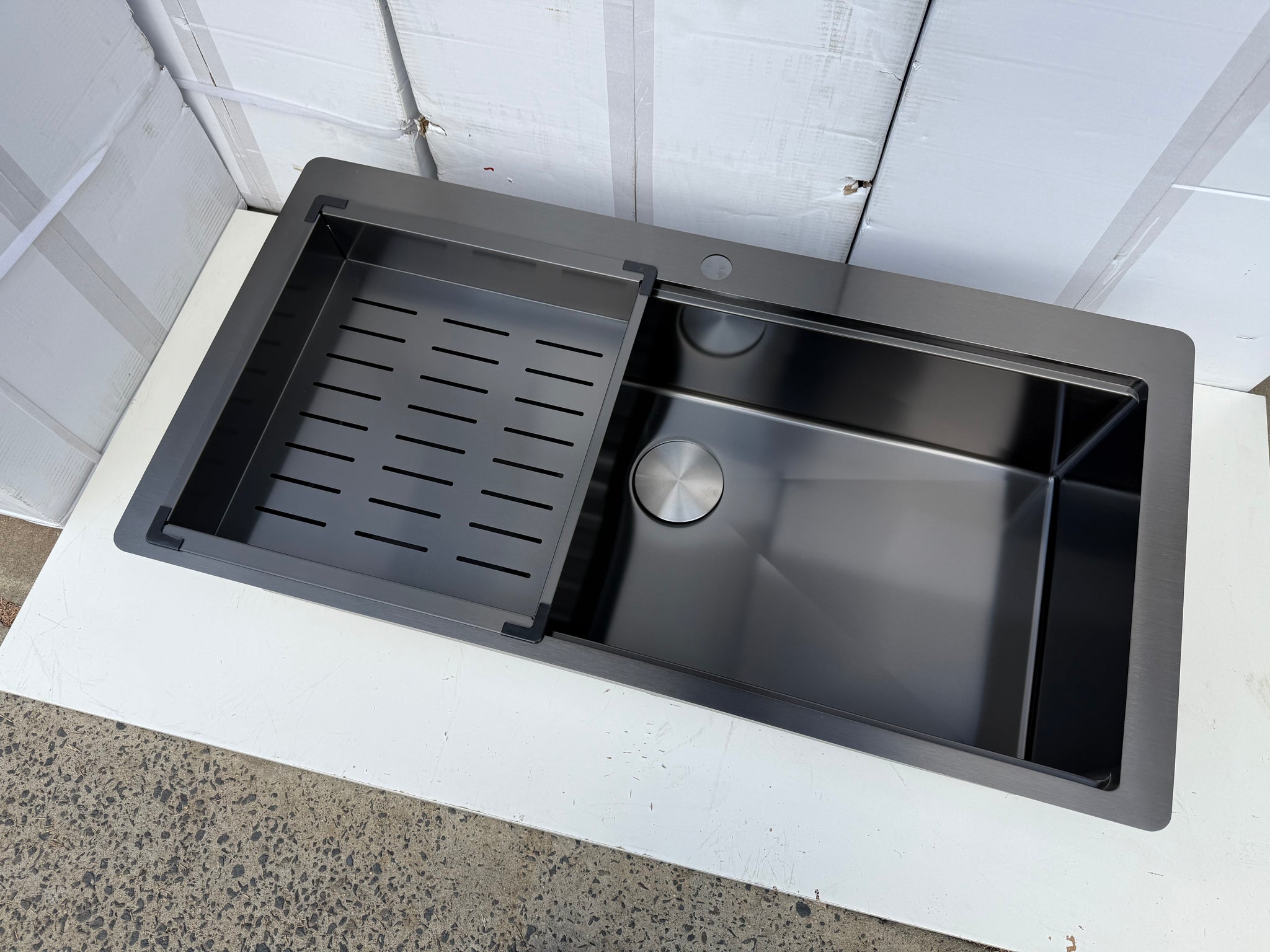 2026 Brushed stianless steel 304 single largest bowl kitchen sink hand made 1.5 mm with tap hole 1020 mm