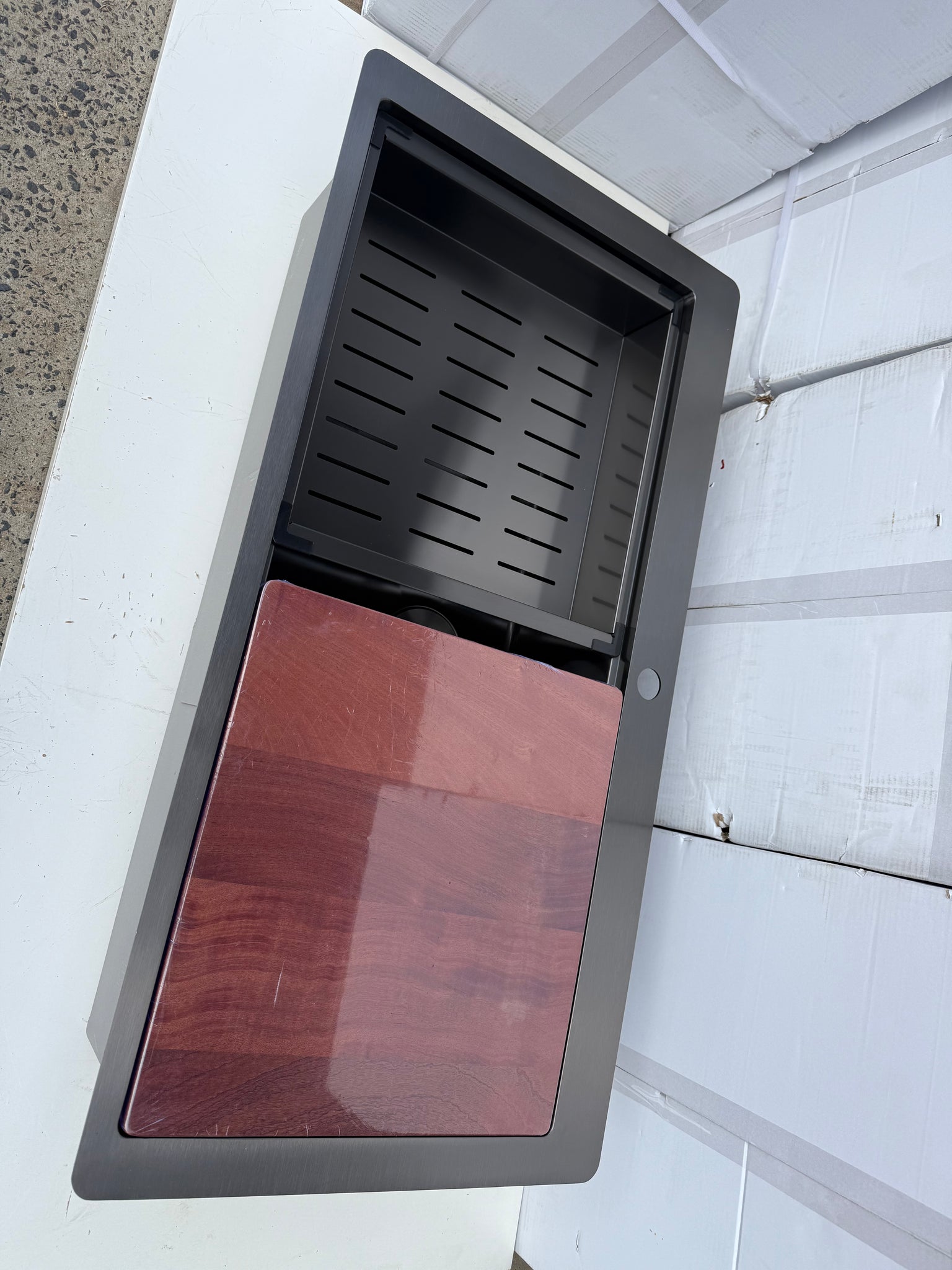 Matching Chopping Board included, Matching sliding Colander at $99,